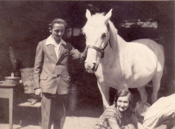 avec sa soeur Xénia et leur chien; sur une variante