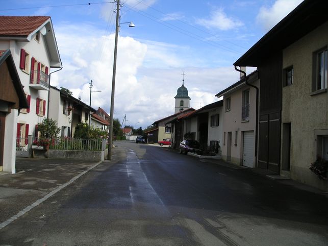 sur la place d’un village. Ces localités, Develier et Pleigne,
